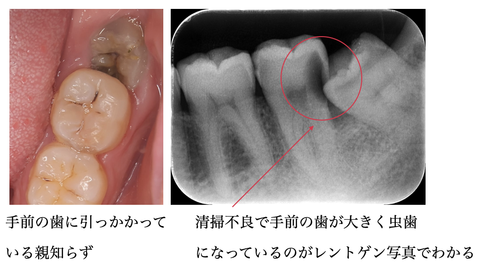 ❷清掃不良によって、親知らずや手前の歯が虫歯になる