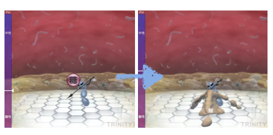 虫歯の原因は虫歯菌で、虫歯菌はお砂糖を原料に酸を産生し、歯を溶かしていきます。虫歯菌は唾液や歯垢の中に存在し、常に口腔内に存在しています。虫歯菌はお砂糖を原料に酸を産生し歯を溶かす病気なので、日々の食習慣が虫歯のリスクに大きく関わってきます。